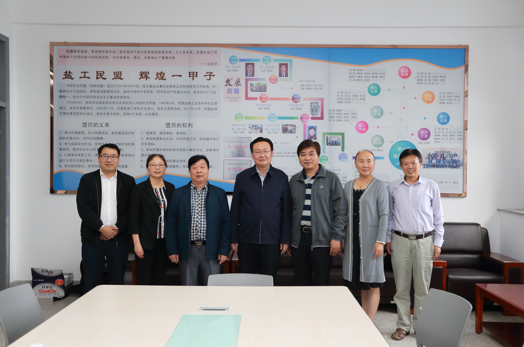 2019年10月9日下午,盐城市委常委、统战部长王荣一行莅临我校调研“盟员之家”。校党委常委、副校长宋长春,党校常务副校长、组织部副部长吴晟奕和校民盟基层委员会相关负责同志参加调研。
