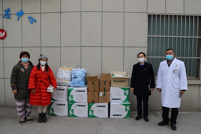 在李静医生多方联系沟通和协调下,购得国外品牌雷克兰防护服331件(已得到盐城第三人民医院认证),连同皮卡丘武汉募捐群赞助的国外品牌霍尼韦尔护目镜90个,保护帽720个。2月19日,于小娟和李静一起,将物资赠与盐城第三人民医院援鄂医疗队,以此向最美逆行医者致敬。
