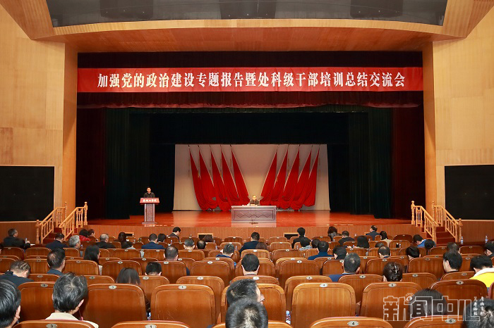 11月13日,我校在希望大道校区行政楼报告厅举办加强党的政治建设报告会暨处科级干部、统战工作骨干培训总结交流会。校党委书记刘祖汉作专题报告,校党委副书记薛浩主持。