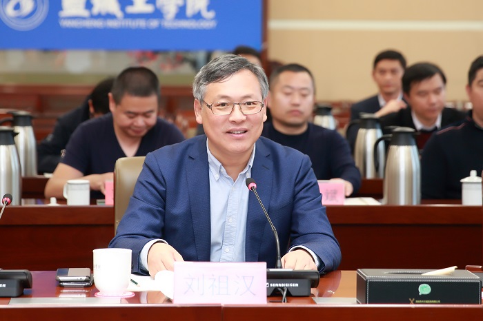 在行政楼九楼会议室,刘祖汉致欢迎辞,介绍了盐城的海盐文化、新四军“铁军精神”、生态旅游、发展现状以及我校的基本概况。