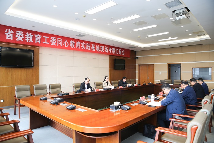 10月21日下午,由南京信息工程大学党委常委、统战部部长陈涛,江苏第二师范学院党委常委、统战部部长周群,南京工程学院党委统战部副部长杨涛组成的省委教育工委考察组来我校实地察看同心教育实践基地建设情况。校党委副书记薛浩出席汇报会并致辞,校党委常委、统战部部长姚军汇报了基地建设情况。校党委统战部、学工部相关负责人及各民主党派代表参加了考察汇报会。
