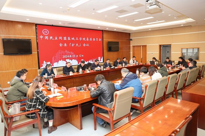 2024年1月12日下午,民盟盐城工学院基层委员会全委(扩大)会议在南校区行政楼九楼视频会议室举行。校党委副书记薛浩,盐城市政协副主席、民盟盐城市委员会主委唐伯平,民盟盐城市委员会副主委蔡建玮、徐桂中,校党委常委、统战部部长姚军,经济管理学院党委书记卜树春应邀出席会议。会议由民盟盐城工学院基层委员会副主委蔡弘志主持。